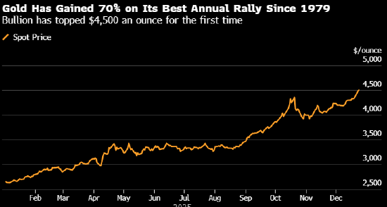 临近年底,部分交易员在贵金属市场经历一轮猛烈上涨后开始获利了结。即便如此,金价今年以来仍上涨近70%,铂金价格则翻了一倍多。